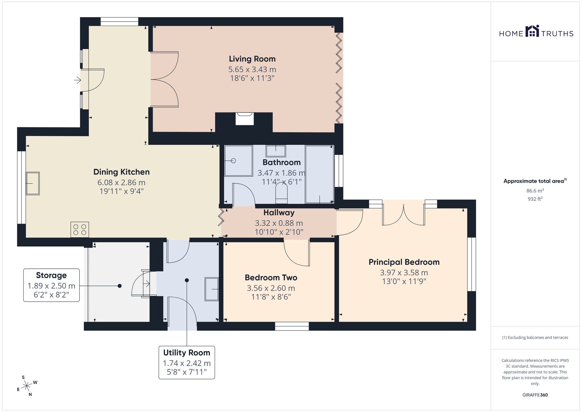 The sleeping accommodation is located to the rear of the property, with the elegant principal bedroom benefiting from built-in wardrobes and French windows opening onto the garden. Bedroom two is also a comfortable double. The stylish bathroom features a sociable double ended bath, separate rainfall mixer shower in cubicle, wc, heated towel rail and wash hand basin set within a vanity unit.