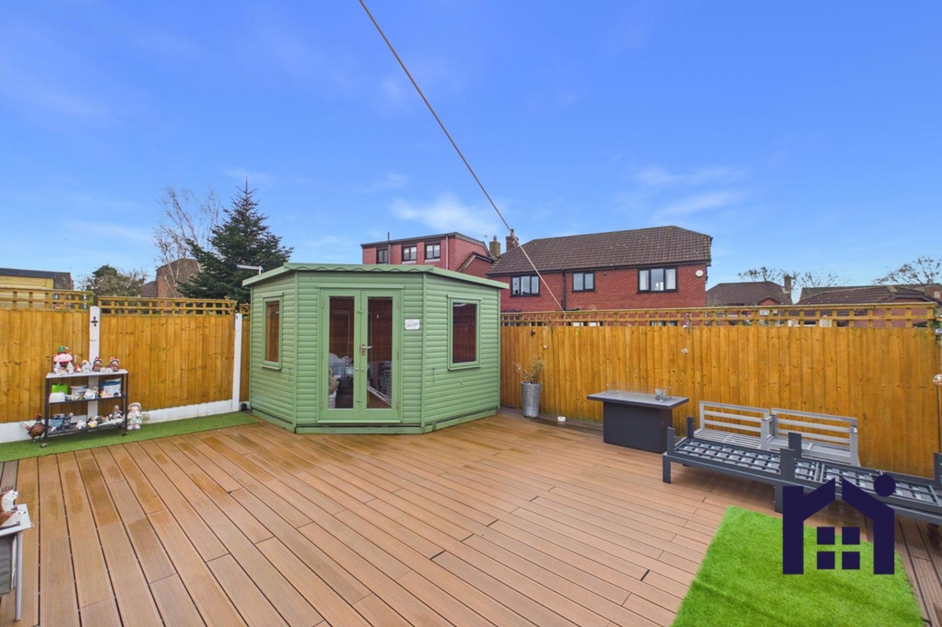 Please be aware the green garden shed is not included in the purchase.