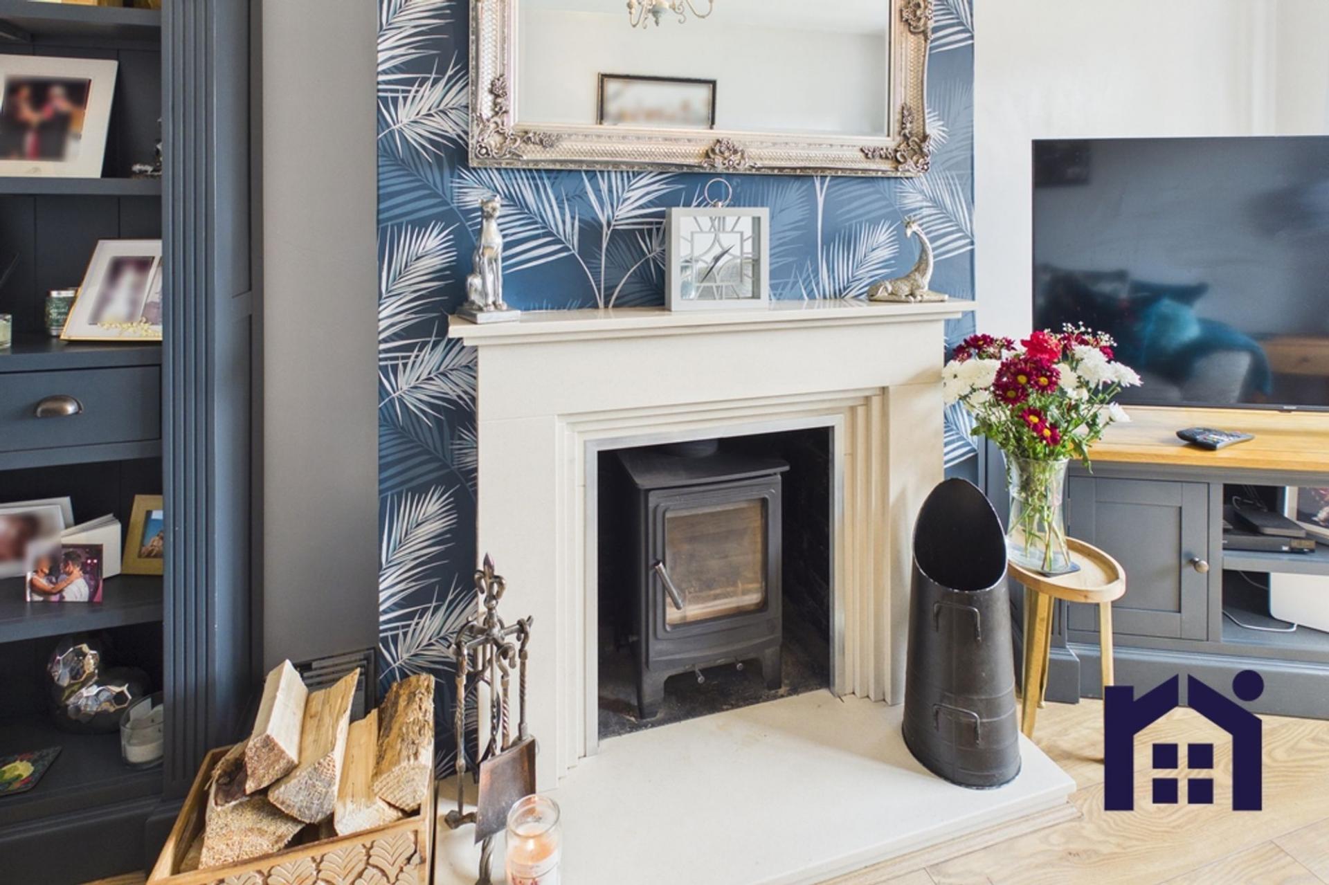 - Living room with feature log burner