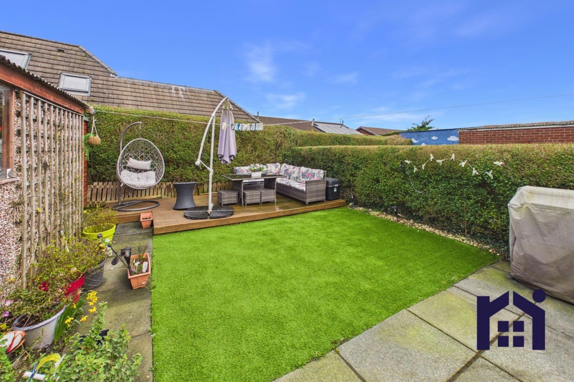 - Low maintenance rear garden with elevated seating area
