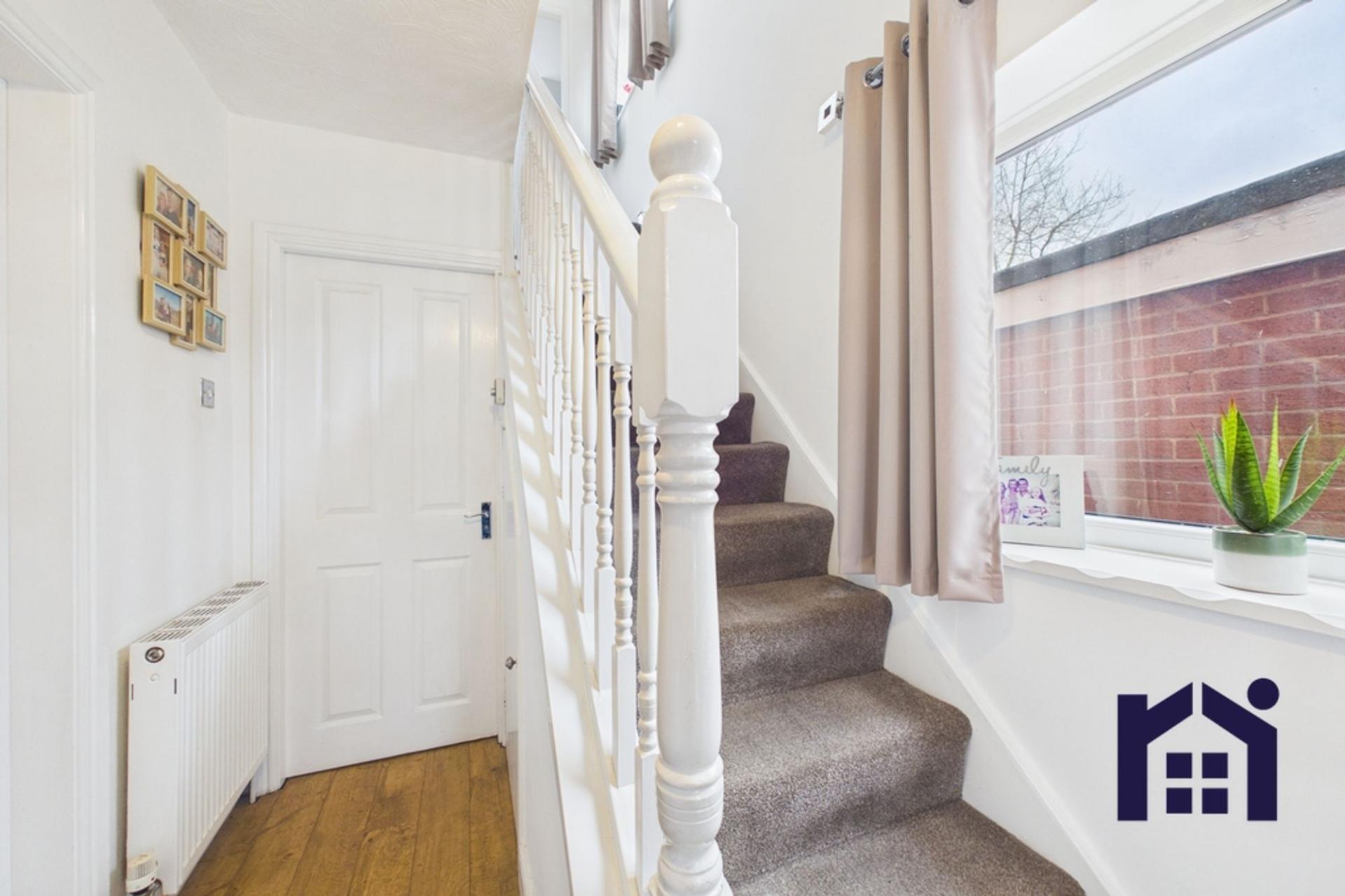 Stepping inside, the bright and welcoming entrance hall sets the tone for the rest of the home. To the front, the spacious living room provides a comfortable and inviting setting, centred around a charming multi-fuel stove set within a half-brick fireplace - creating a cosy focal point for relaxing evenings.