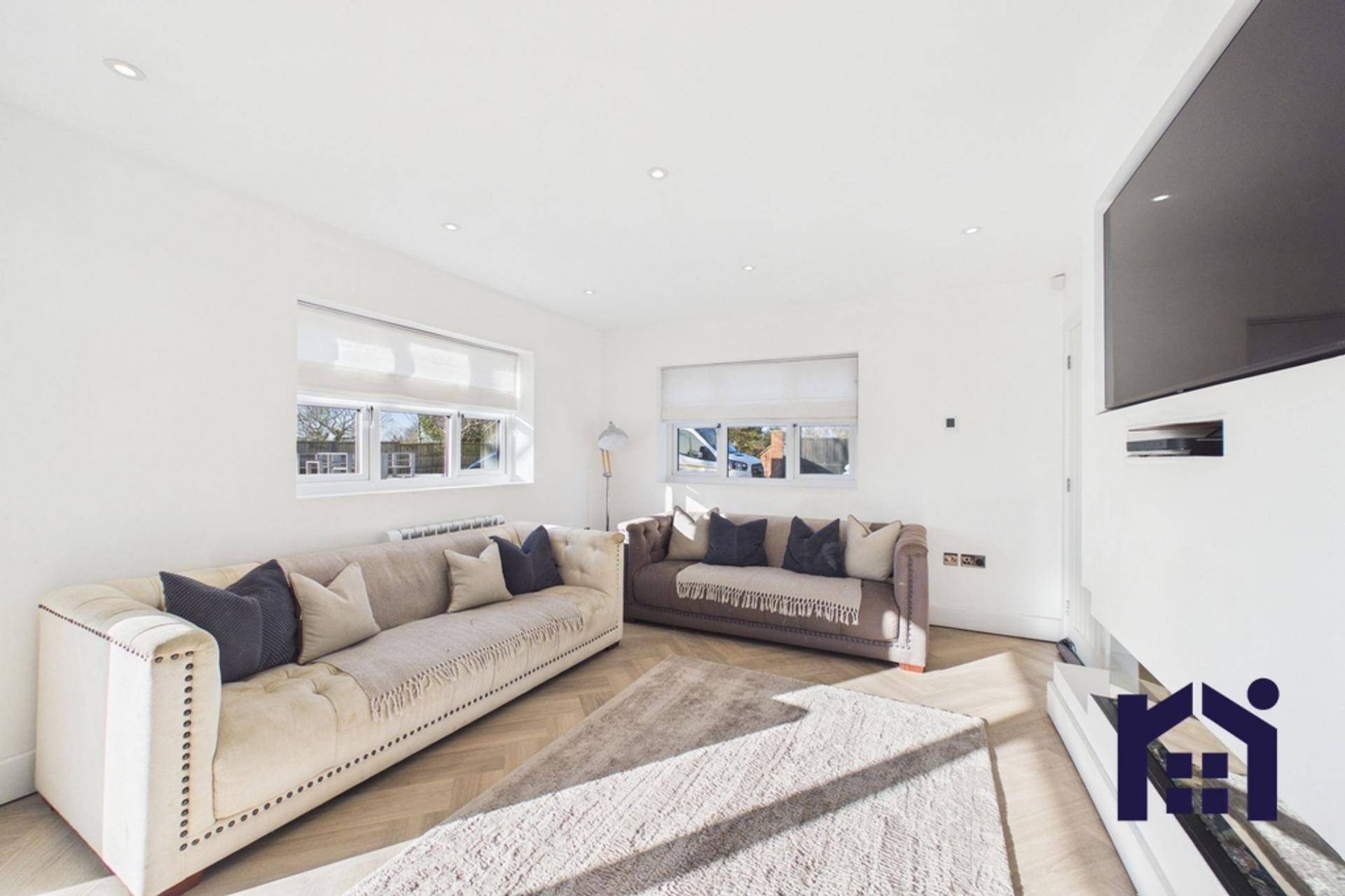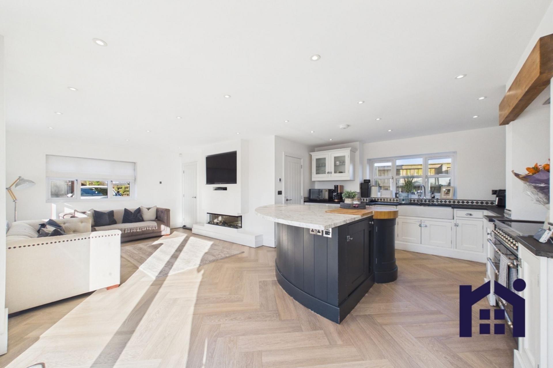 - Open-plan family living with electric feature fire