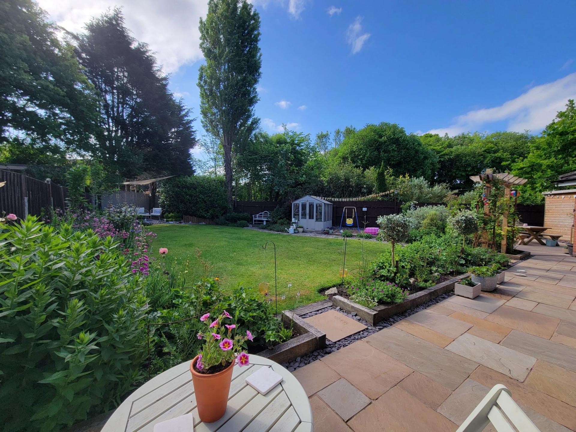 Externally, the large landscaped rear garden has been thoughtfully redesigned with Indian stone paving, level lawn and attractive borders, creating a fantastic space for relaxing and entertaining.