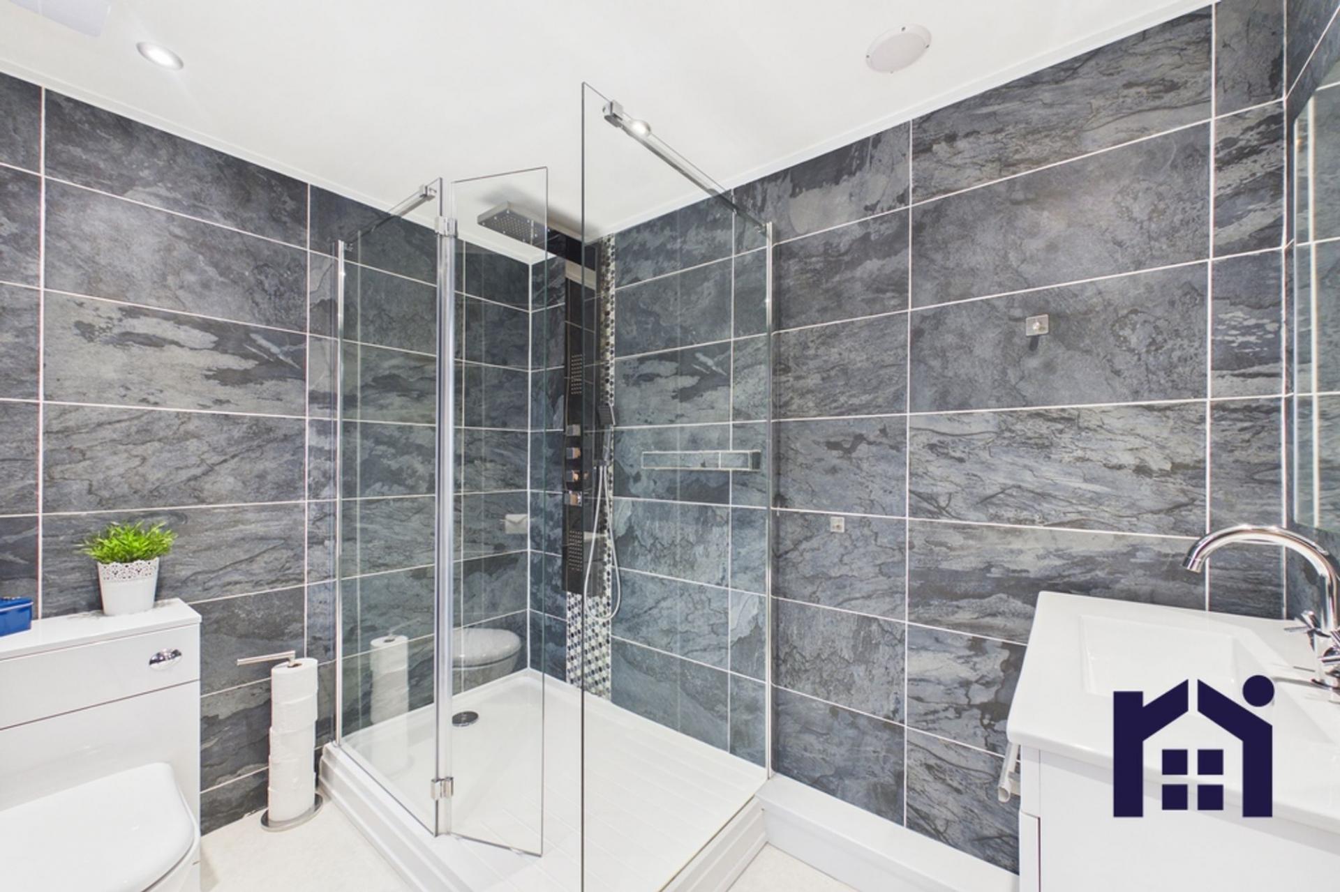 Upstairs, there are three well-proportioned double bedrooms, all offering excellent space. The principal bedroom benefits from a modern ensuite featuring a large shower, WC and wash basin. The family bathroom comprises a bath with electric shower over, WC, and built-in storage.
