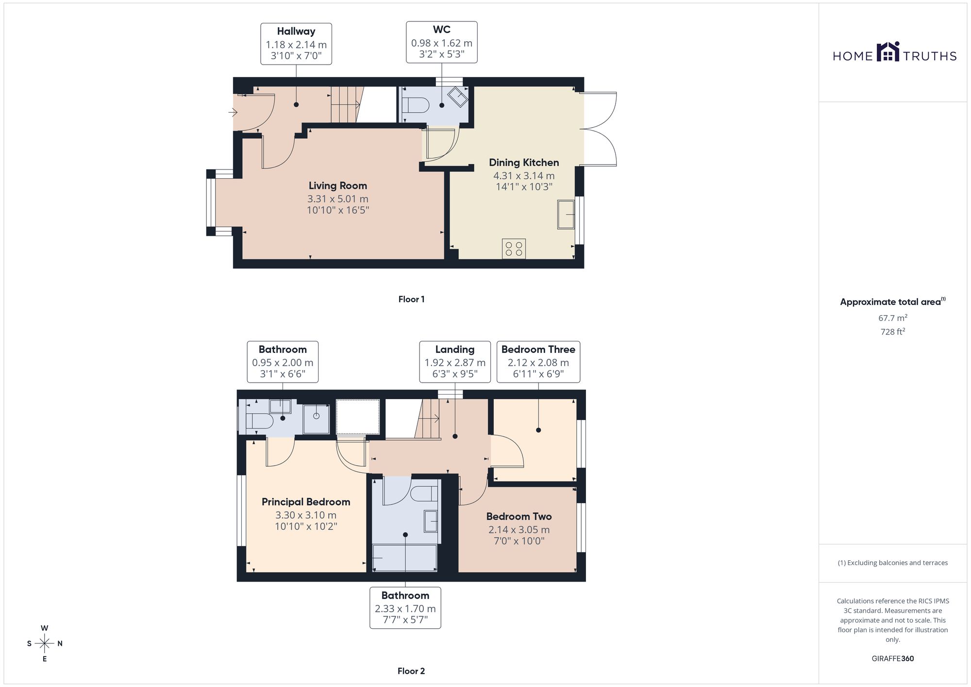 Back inside, stairs lead to the first floor landing with loft access. The principal bedroom sits to the front and benefits from an en suite comprising mixer shower in cubicle, wc, floating wash hand basin and ladder heated towel rail. Bedroom two is also a comfortable double, whilst bedroom three is a good sized single. Completing the accommodation is the family bathroom with bath and shower attachment, wc and floating wash hand basin.