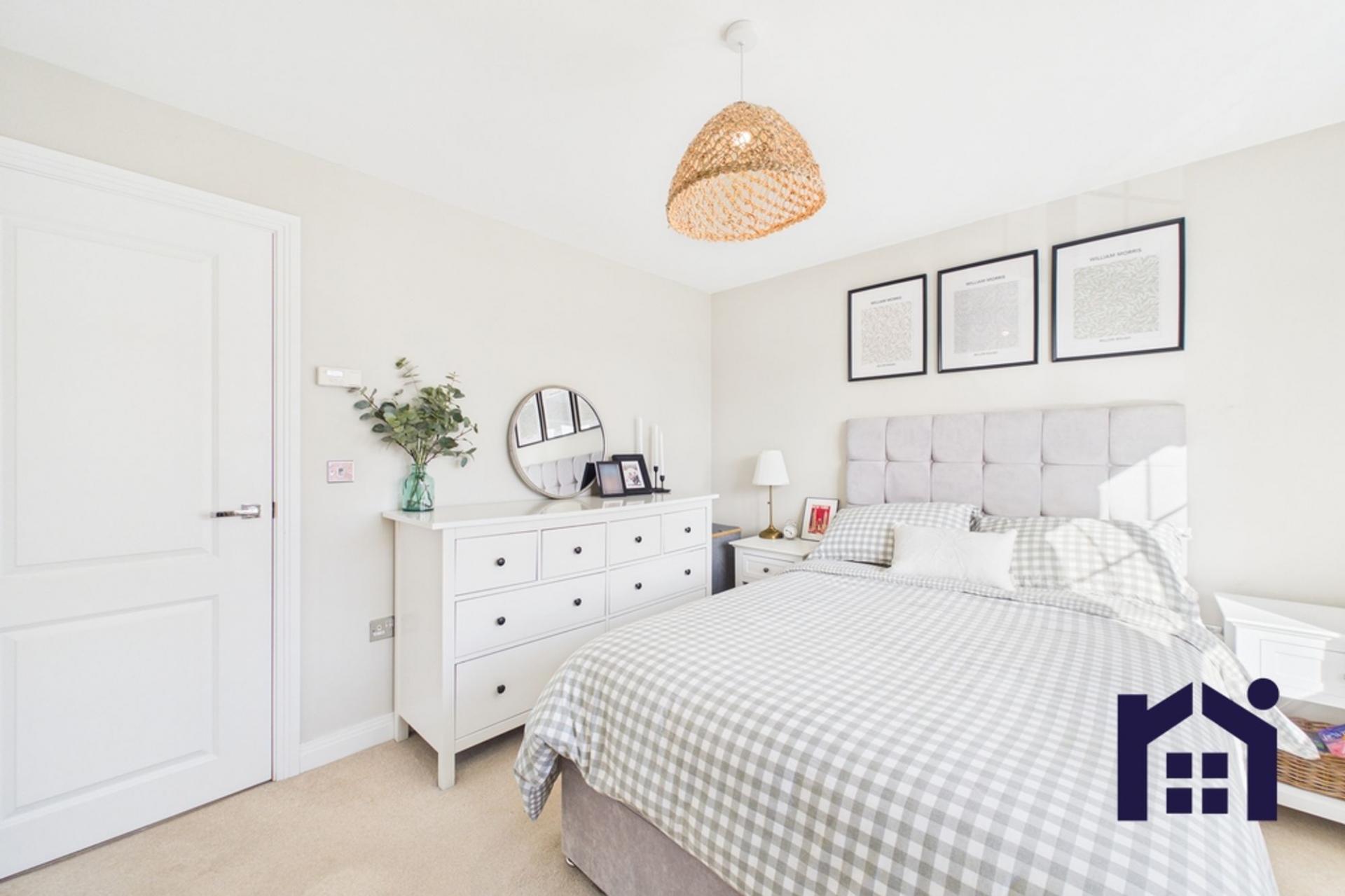 To the front, the driveway provides parking for two vehicles and leads past the garden to the main entrance. Step into the welcoming hallway and from there to the serene bay fronted living room, a lovely light-filled space perfect for relaxing. To the rear, the dining kitchen forms the heart of the home and comprises a range of wall and base units with integrated appliances including gas hob, double electric oven and grill, dishwasher and washing machine, with patio doors opening out to the garden and allowing plenty of natural light to flow through the space. Completing the ground floor is the cloakroom with wc and wash hand basin.