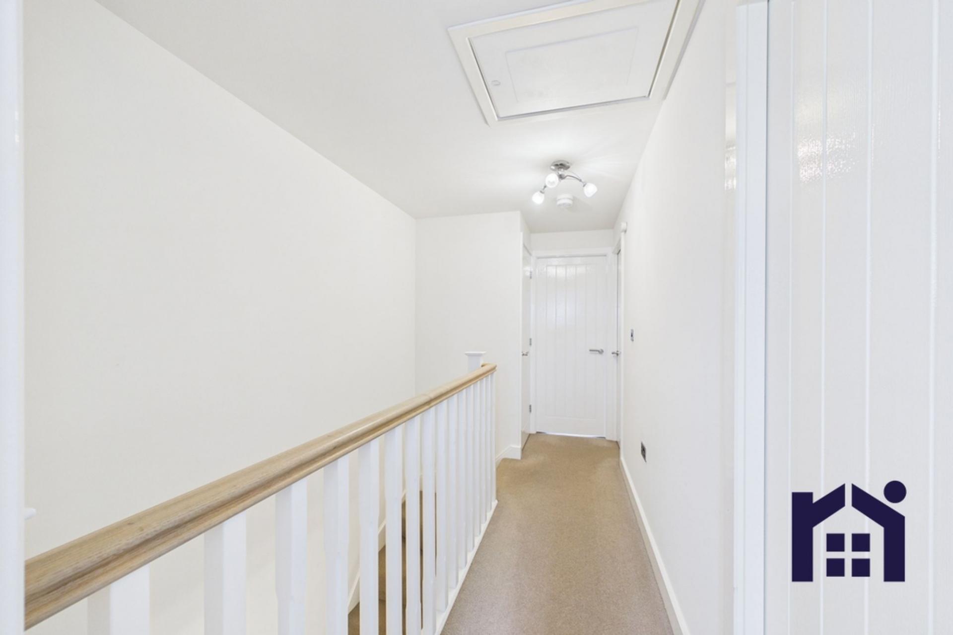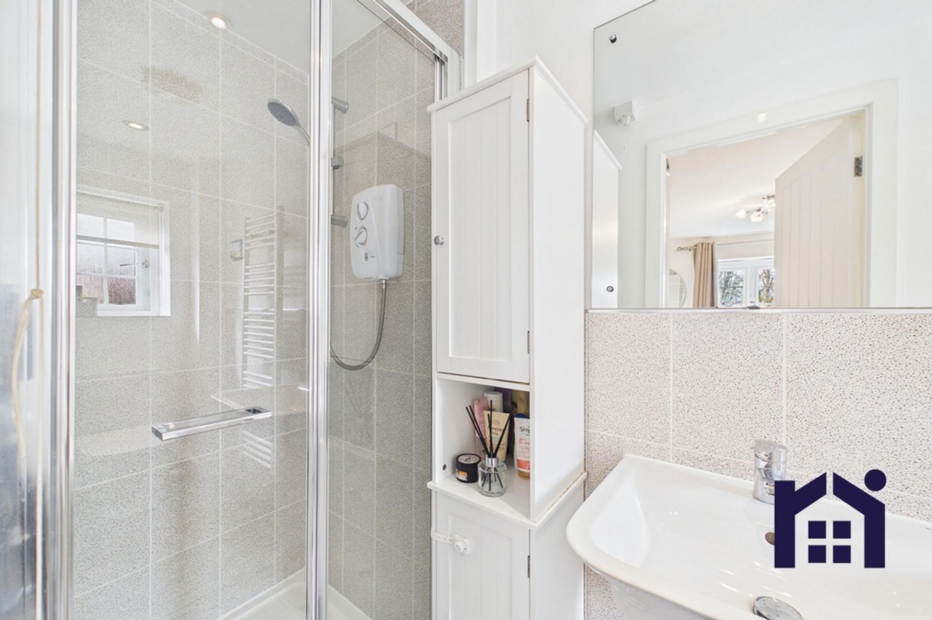 Upstairs, there are three bedrooms, including a principal bedroom with ensuite shower room, along with two further well-proportioned bedrooms. The family bathroom comprises a bath with overhead shower, WC and wash basin. Additional storage is available via a cupboard on the landing and loft access.