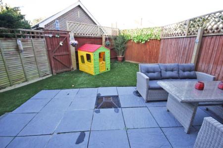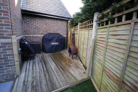 This has been laid for ease of maintenance with an area of patio immediately adjoining the rear of the house with an inset fire pit. To the side is a raised decked area suitable for bbq's etc and the remainder has been laid with artificial grass. Outside light and power. The boundaries are defined by 5ft panelled fencing with trellacing above and a gate way provides access to the rear.