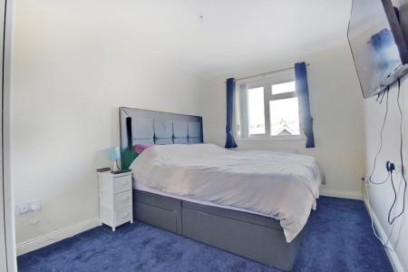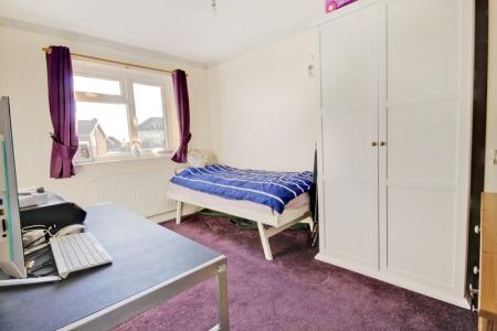 Aspect to the rear. Range of built in wardrobes comprising a double and a single with drawers below. Coved and textured ceiling. Radiator.
