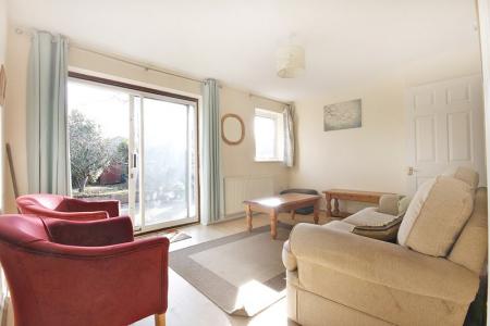 Dual aspect over the garden with sliding patio door. Textured ceiling, radiator and laminate flooring. Door to: