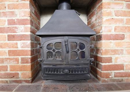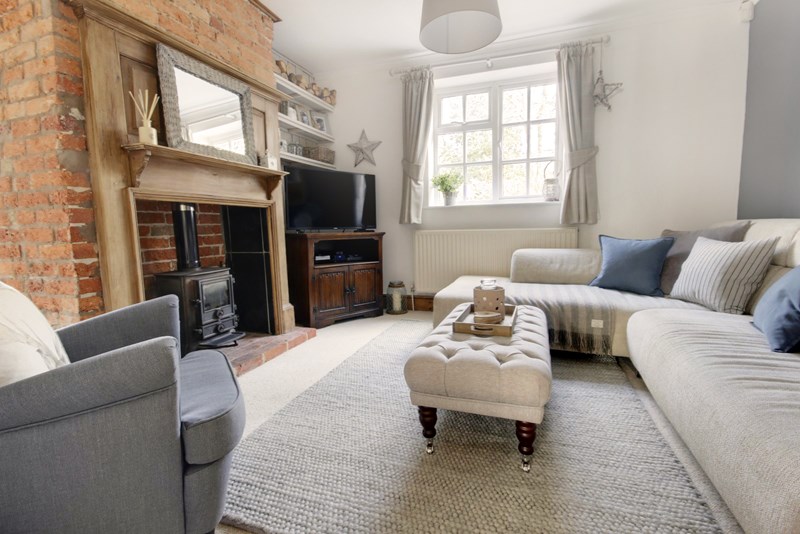Aspect to the front. Feature natural brick chimney breast with brick hearth and wooden mantel and surround with an inset cast iron wood burning stove. Radiator, coving and return door to hall.