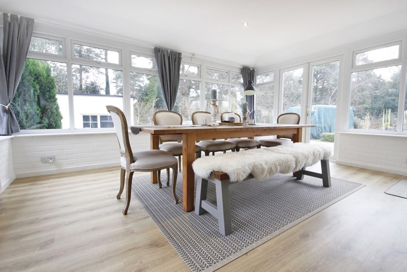 Triple aspect. Laminate style flooring, double and single doors onto the garden and improved with a recently replaced reconstituted slate style roof and internal ceiling with downlights. Radiator.