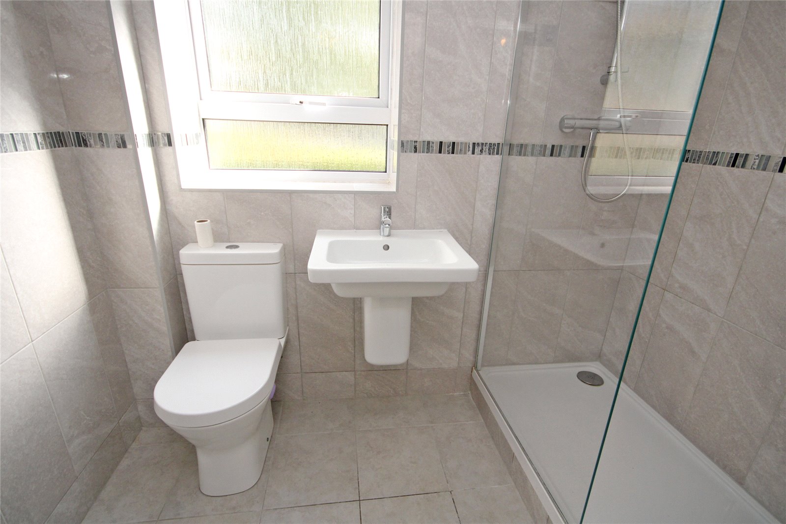 Being fully tiled comprising wash hand basin with mixer tap, low level w.c., good sized tiled shower cubicle with shower over, heated towel rail, tiled flooring, window to side.