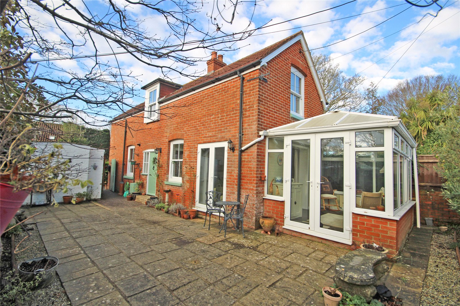 Being paved with a southerly aspect, providing a lovely courtyard sitting out area with well stocked shrub and flower borders, bordered by fencing. Outside water tap. Rear pedestrian gate into Chewton Way.