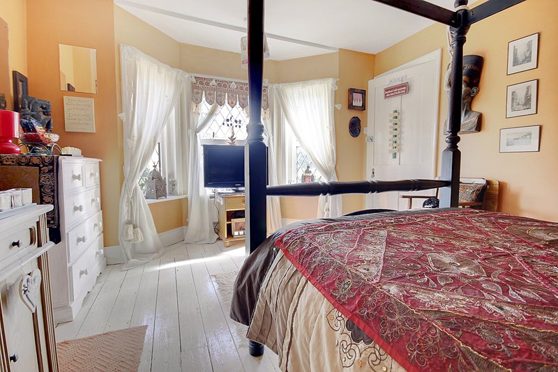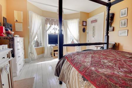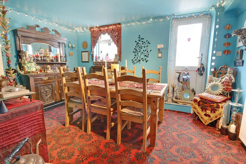 Currently arranged as a ground floor bedroom (six.) Aspect to the front, open fireplace with tiled surround and hearth and wooden mantel. Picture rail, flat set ceiling, two radiators and painted wooden floor.