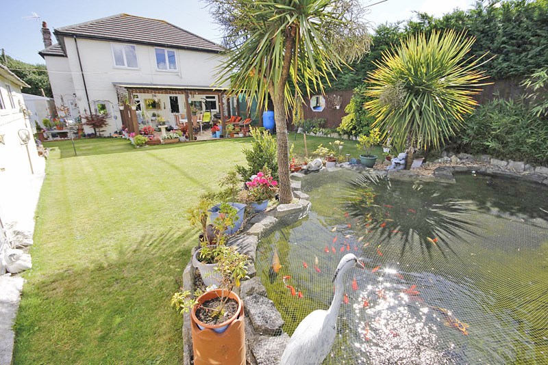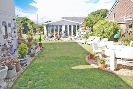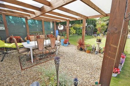 This has been attractively laid to a large shaped area of lawn with well-stocked flower and shrub borders with inset circular gravelled seating area and a matching gravelled area alongside the proeprty leading off the living room. Large timber pergola with cover and a gravelled base providing an excellent area for outdoor entertaining and dining with space for a table etc. Large corner feature fish pond with raised border within palms and shrubs. Return access from the rear garden alongside the property to the front.