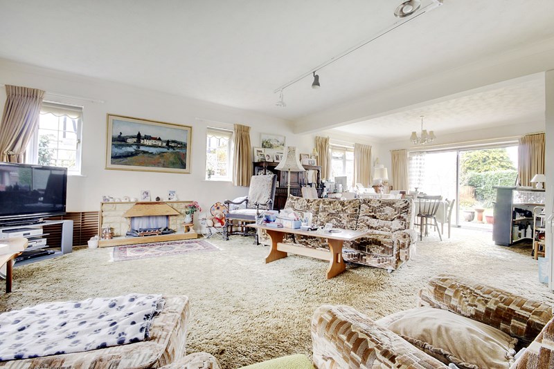 SITTING/DINING ROOM: 27'11" x 14'1" 18'7" (8.51m x 4.29m5.66m) Two radiators,UPVC double glazed windows overlooking front and side aspects, further slidingpatio doors.