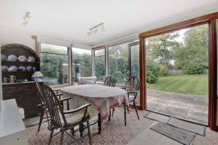 Dual aspect and overs the garden with double opening doors onto the patio. Coved and textured ceiling, two radiators currently used as a dining room with space for dining table.