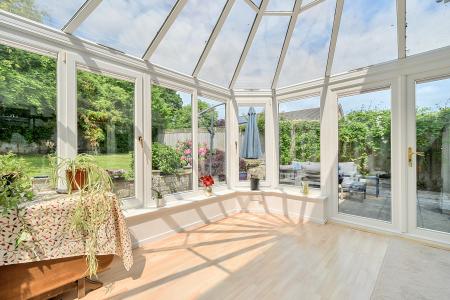 The modern kitchen is both practical and stylish, combining ample worktop space with deep drawers and cupboards offering generous storage, along with fully fitted appliances – ideal for busy family routines or keen home cooks. Just beyond, the conservatory provides a peaceful retreat flooded with natural light, making it a perfect spot for morning coffee, reading, or simply enjoying views of the garden year-round.