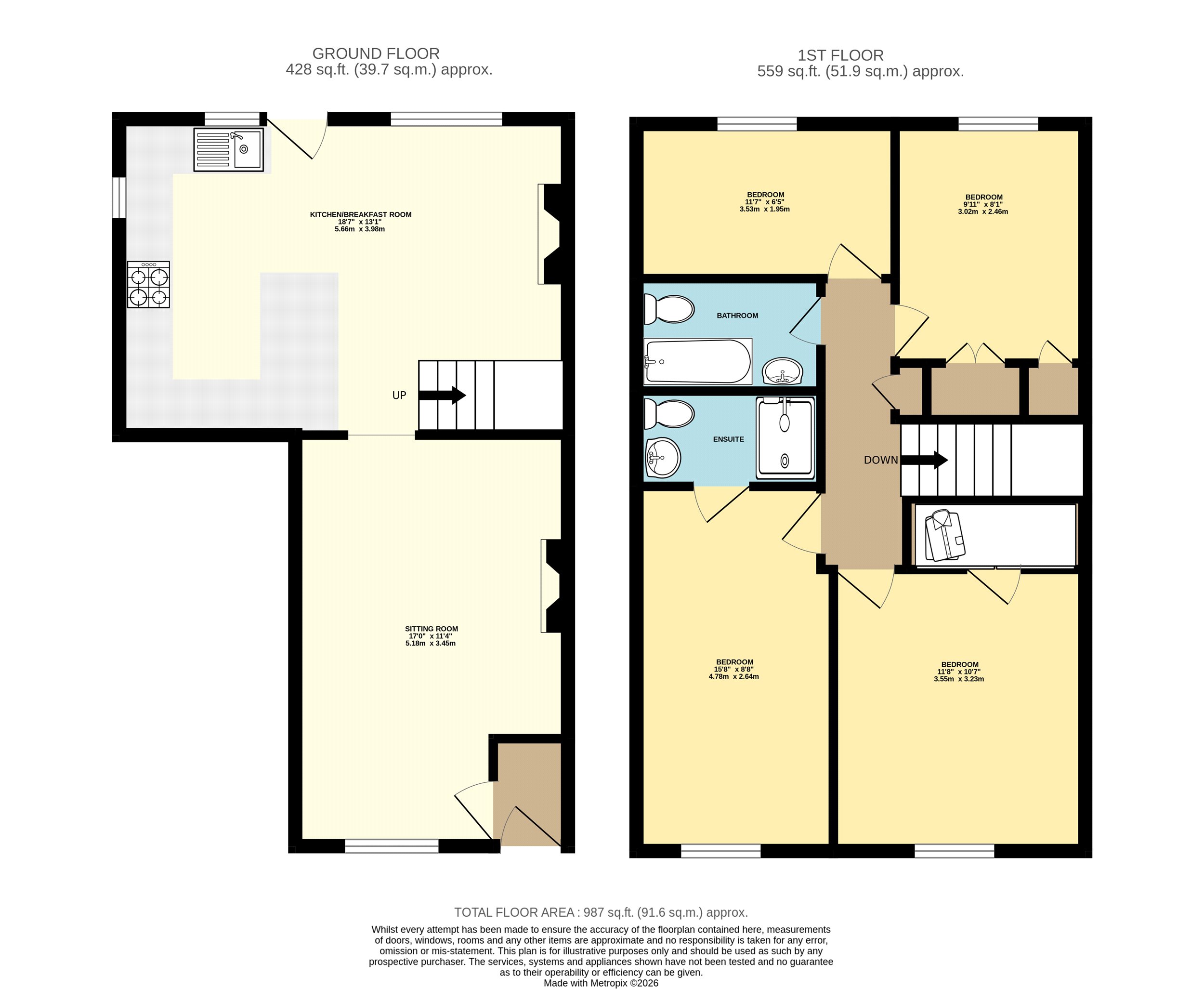 There is a flying freehold over the garage. A small window in the kitchen overlooks the neighbour’s conservatory.