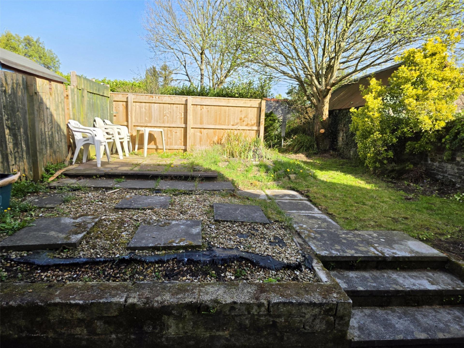 The raised rear L shaped garden has a strategically placed terrace ideal for some al fresco dining or quiet time reading. The rest of the garden is laid to lawn, a small ornamental pond. Mounted on the back wall of the house is an outside water tap, external power socket and lighting.