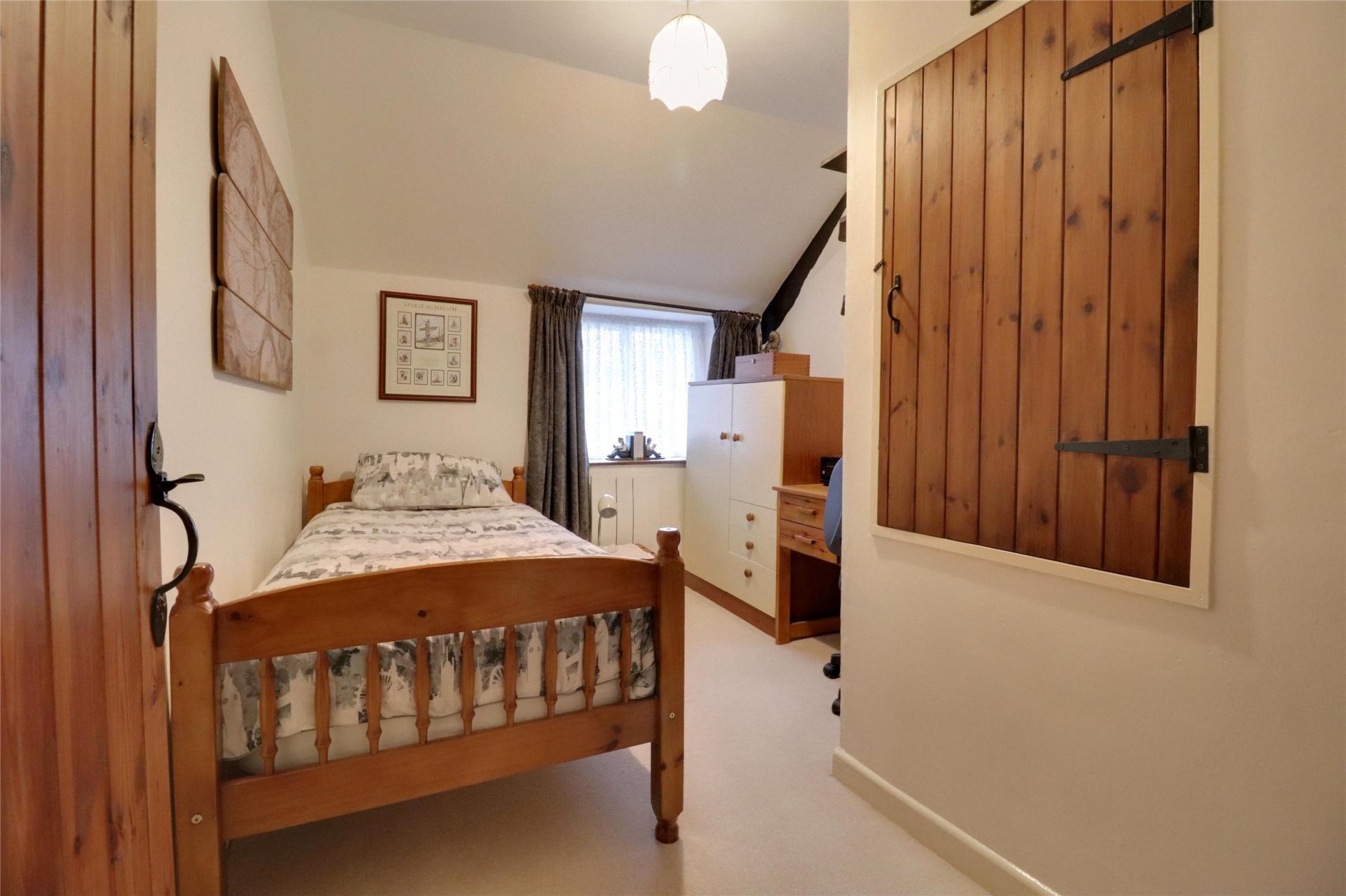 On the first floor, there are two bedrooms, with the principal bedroom enjoying the advantage of two built-in cupboards.