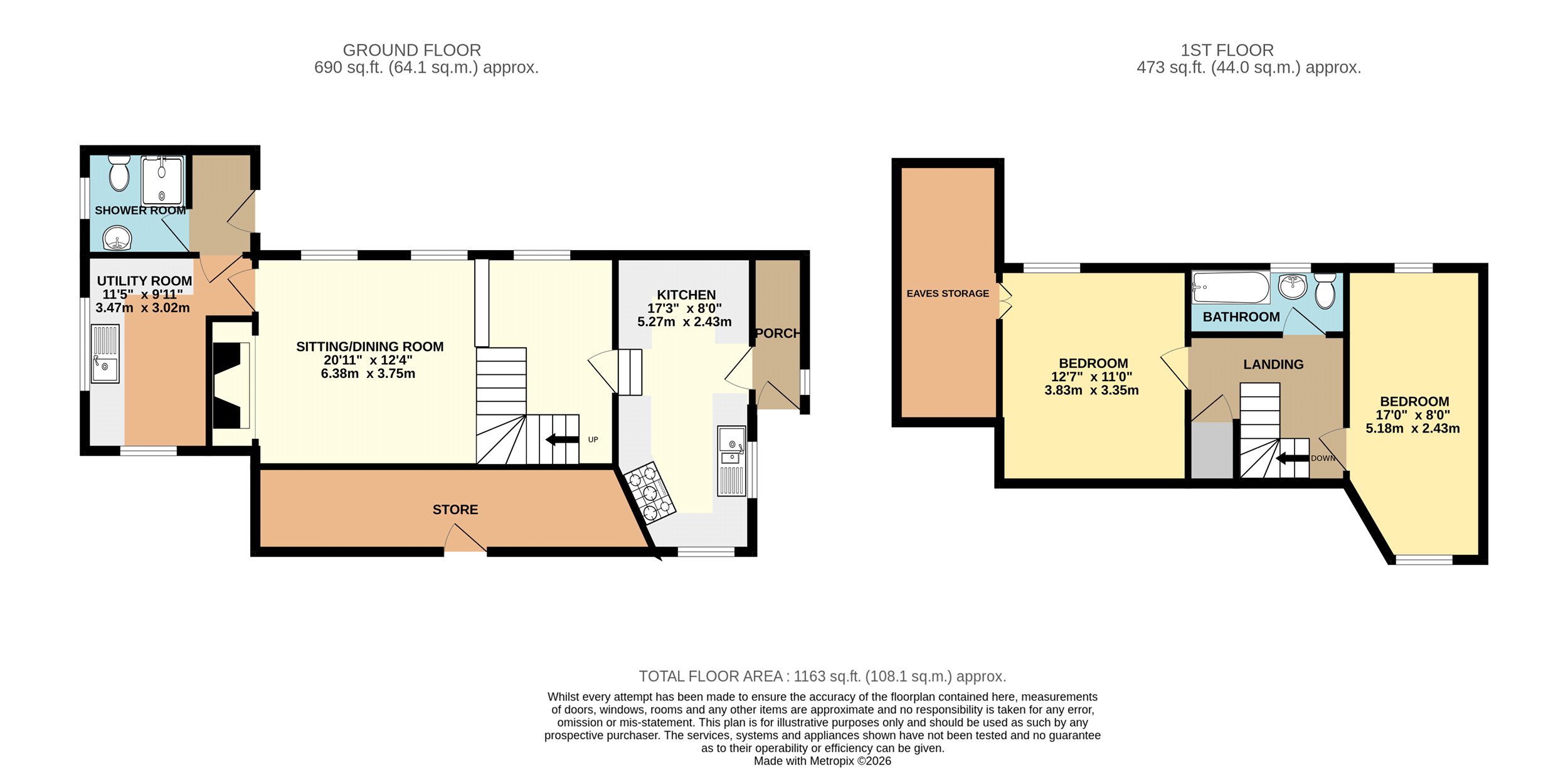 On the first floor, there are two bedrooms positioned at either end of the cottage, with a three piece bathroom suite located centrally. The larger bedroom also benefits from access into a sizeable eaves storage space.