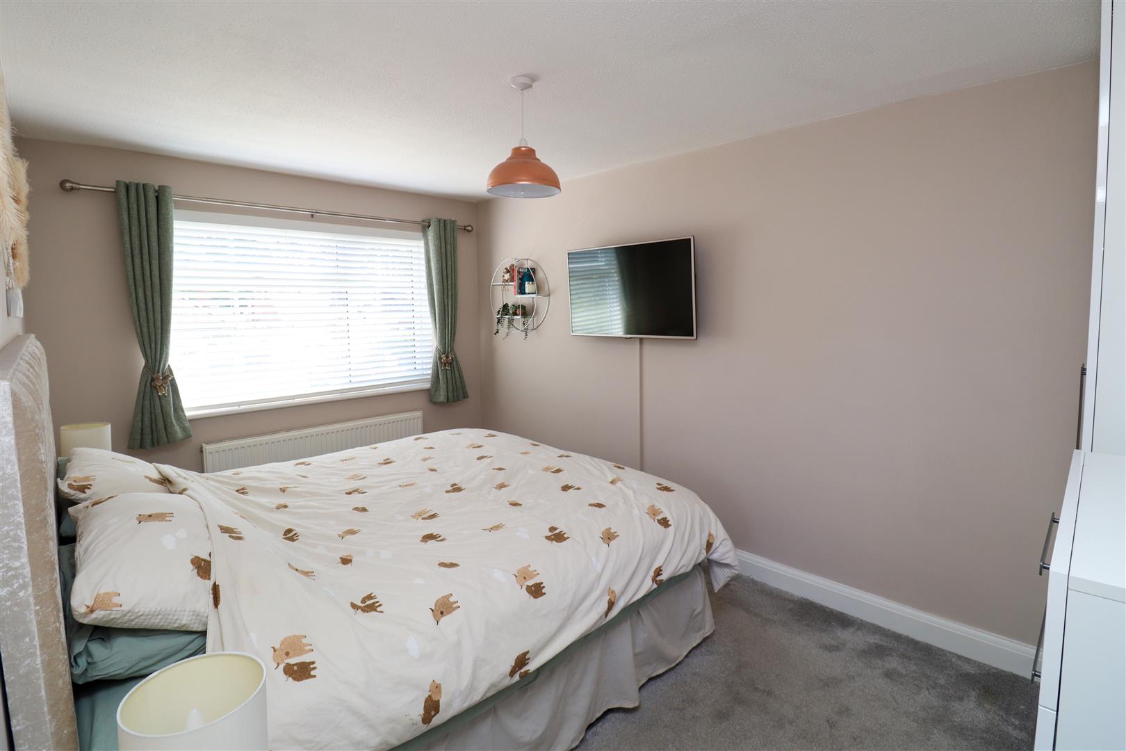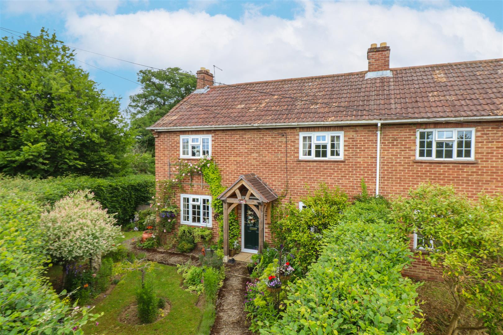 Outside the front of the property is a small lawned area enclosed by a brick wall and driveway parking for 2 cars with access to the garage.
