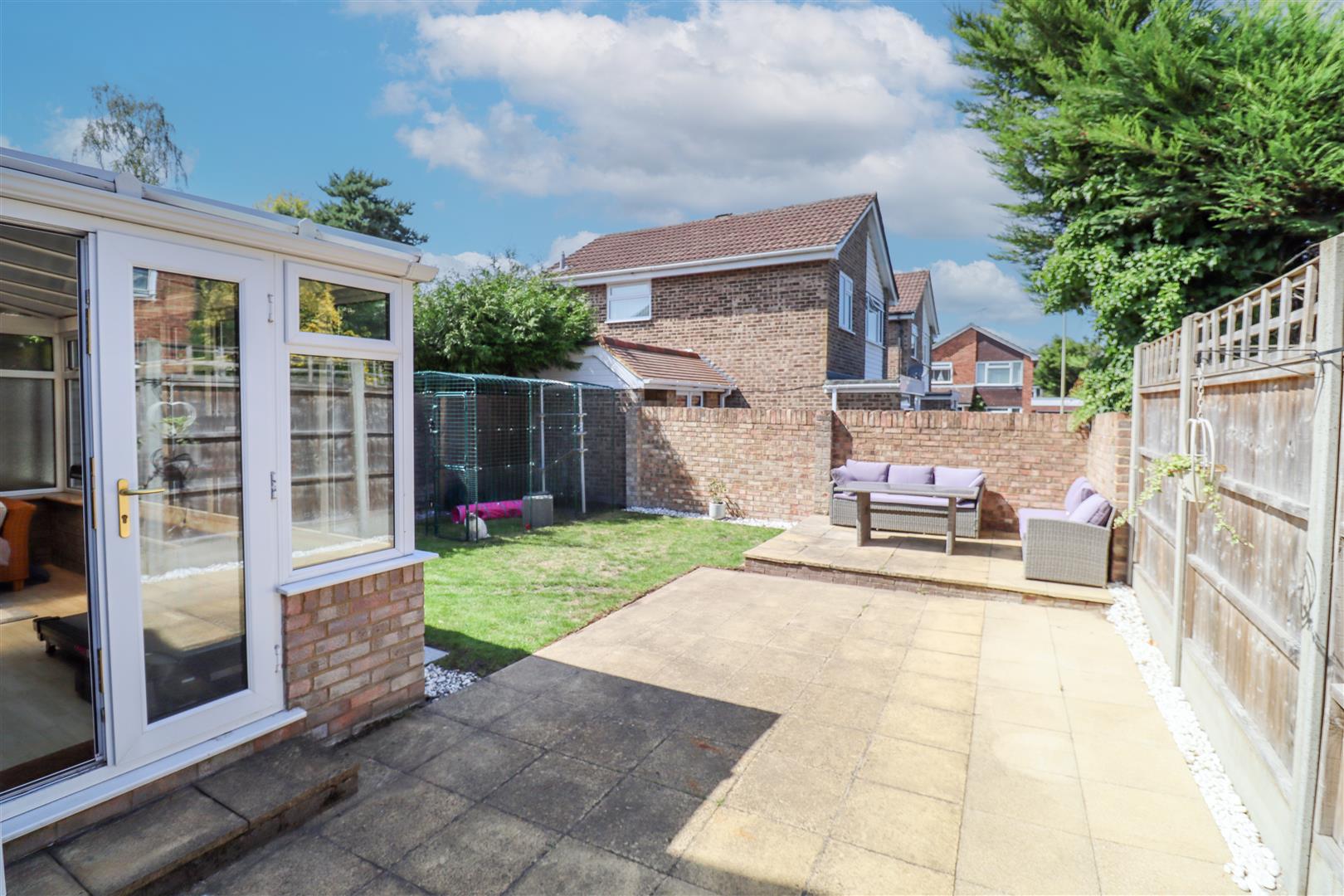 The enclosed rear garden is mainly laid to lawn with a mixture of flowers throughout. Outside the back of the property and at the rear of the garden are two patio areas which are ideal for al fresco dining. Access to the garage can be found within the garden and this space offers plenty of storage, power and lighting.