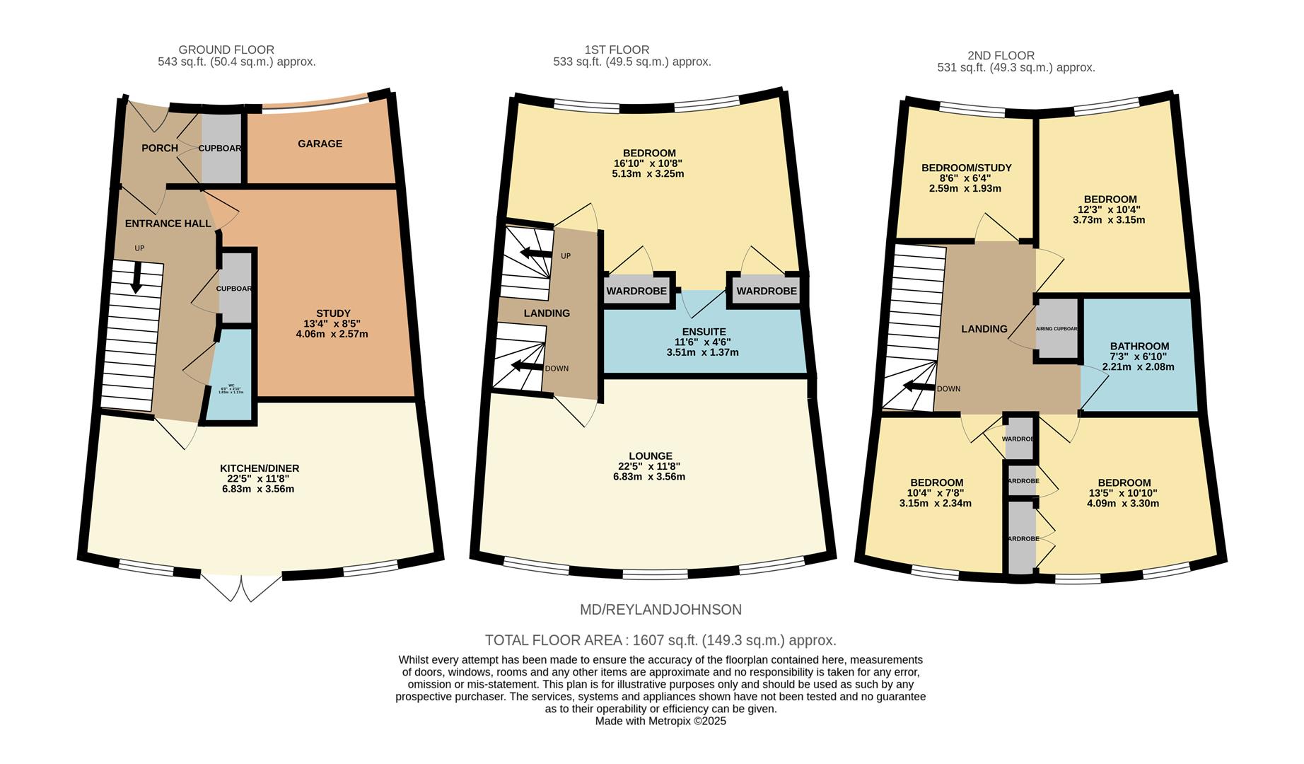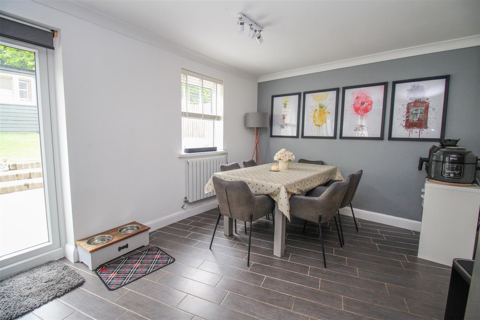 GUIDE PRICE: £500,000 - £525,000. This spacious FIVE bedroom, immaculately presented town house spans over three floors, includes a partly converted garage, a driveway and a huge multi purpose outbuilding. On the ground floor there is a beautiful kitchen diner with a range of fitted wall and base units plus an island, a study/office and a cloakroom/WC, whilst upstairs is the imposing 22ft lounge and a master bedroom with fitted wardrobes and an en-suite. the top floor comprises of four further bedrooms plus a family bathroom with a white three piece suite. Outside the rear garden has been landscaped, incorporating a mix of patio and artificial lawn, with a large multi purpose building, currently with a kitchen and guest bedroom in it. Malkin Drive is located at the top of Church Langley, with excellent schools, shops and open fields within walking distance.