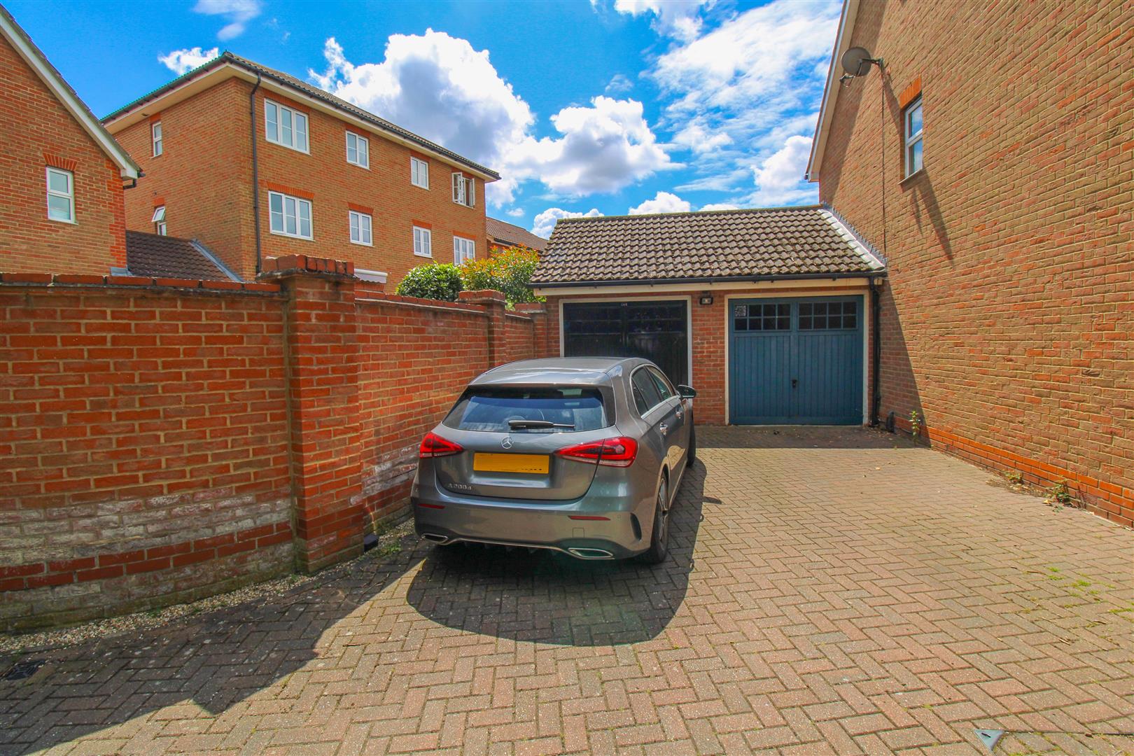 A stunning flint encrusted link detached family home with garage & driveway. The property comprises an entrance hall with cloakroom/WC leading to a lounge, kitchen/diner with a range of fitted wall & base level units with work-surface areas, landing, master bedroom with en-suite shower room, two further bedrooms and a family bathroom with a white three piece-suite. Outside the rear garden is westerly facing and is laid to AstroTurf with a patio area and side access. Malkin Drive is located on the popular Church Langley development with local, shops, schools and playing fields nearby.