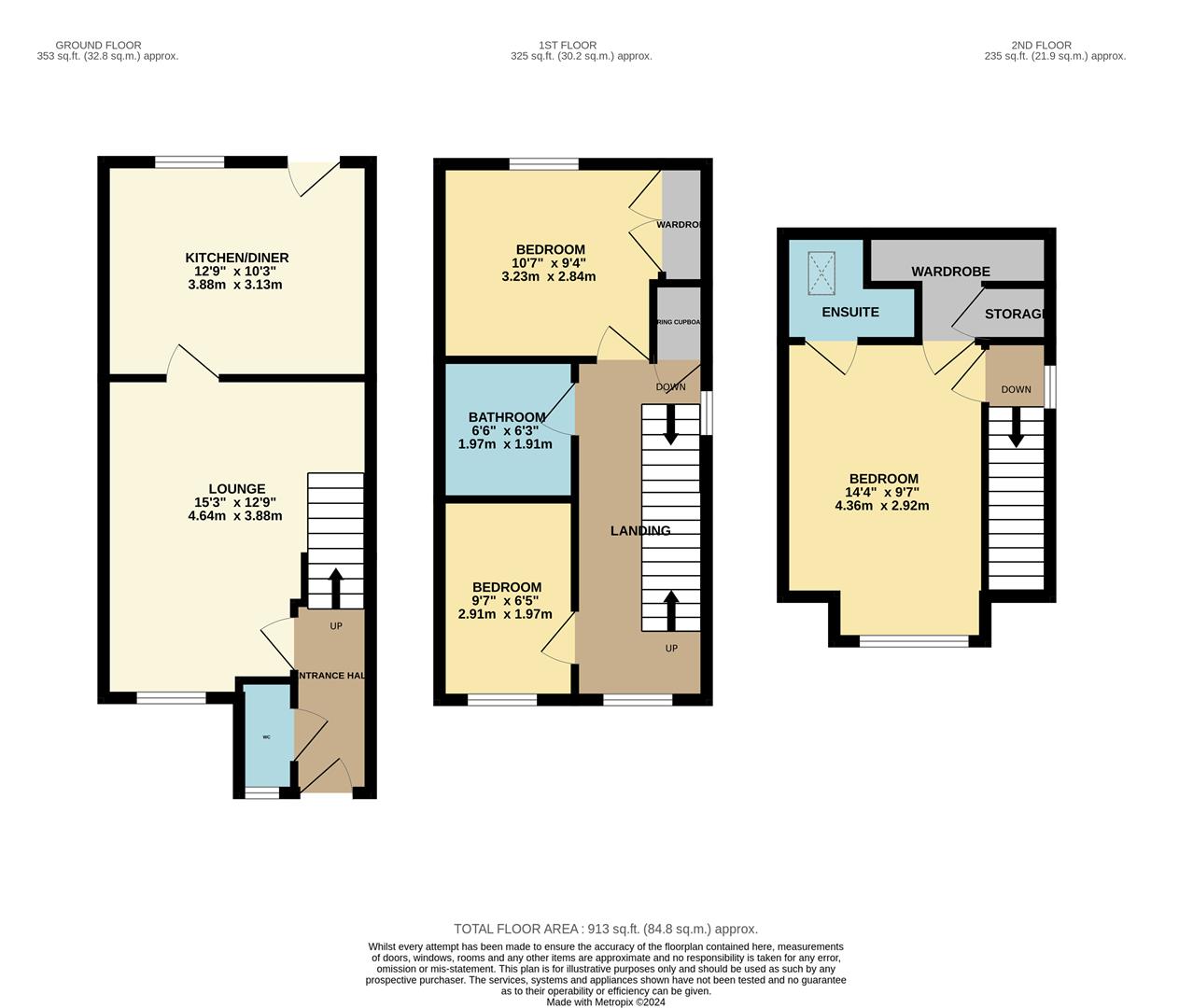 **GUIDE PRICE £390,000 - £400,000** A chain free, three bedroom semi detached family home with a garage and driveway. The property has accommodation over three floors with the ground floor having an entrance hall, W.C/cloakroom, lounge and a kitchen/diner which has a range of fitted wall and base units and access to the rear garden. The first floor has two bedrooms and a family bathroom and the top floor has a large double bedroom with en-suite shower room and walk-in wardrobe. The garden is south facing and there is also a garage and driveway to the front.