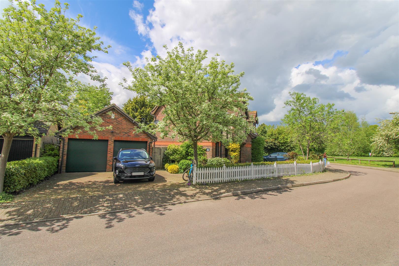 Offered with no onward chain and positioned overlooking the bridle path is this executive four bedroom detached family home with a huge frontage including a detached double garage and driveway for three cars. The ground floor comprises an entrance hallway leading to a lounge, dining room, kitchen with a range of fitted wall and base level units, a large conservatory/extension and a cloakroom/WC. The first floor offers a master bedroom with an en-suite, three further bedrooms and a family bathroom. Outside the west facing rear garden is mainly laid to lawn with a patio area, side access, shed and access to the double garage. Mallards Rise is found just off of Church Langley way and is just a short walk to local shops, schools and open playing fields.