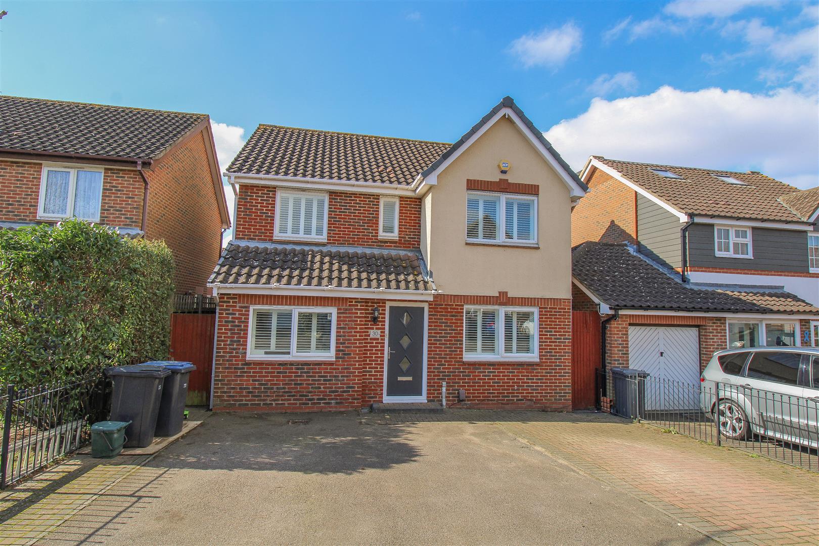 Found in a quiet cul-de-sac in the popular turning of Wedgewood Drive, this three/four bedroom detached family home has been reconfigured and upgraded throughout. The property comprises an entrance hallway leading to a bright lounge, open plan kitchen and dining area with a range of modern fitted wall and base units, utility room, playroom/study and a cloakroom/WC. The first floor has four bedrooms with an en-suite to the master, plus bedroom four and the family bathroom have been swapped, to create a huge family bathroom with a white three piece suite and separate double shower. The west facing rear garden is mainly laid to AstroTurf lawn with a decking area, while at the front of the house is a driveway for two or three cars. Wedgewood drive is within the Church Langley development and located just off Lane End, with local schools, shops and playing fields close by.
