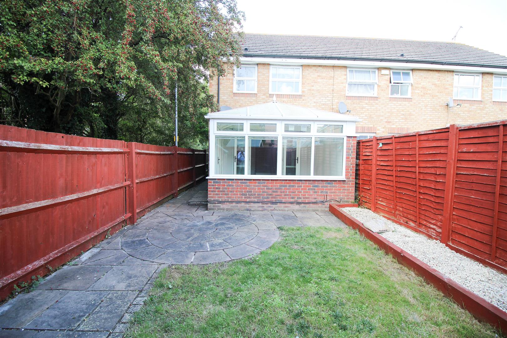 Offered for sale with no onward chain is this two bedroom end of terrace house with allocated parking and conservatory. The property comprises an entrance hall leading to a kitchen with a range of fitted wall & base level units, lounge/diner, conservatory, landing, two bedrooms and family bathroom with a white three piece-suite. Outside the rear garden is mostly laid to lawn with a patio area and side access. Doulton Close is a popular area located within the Church Langley development with local shops, schools and playing fields nearby. Chain Free.