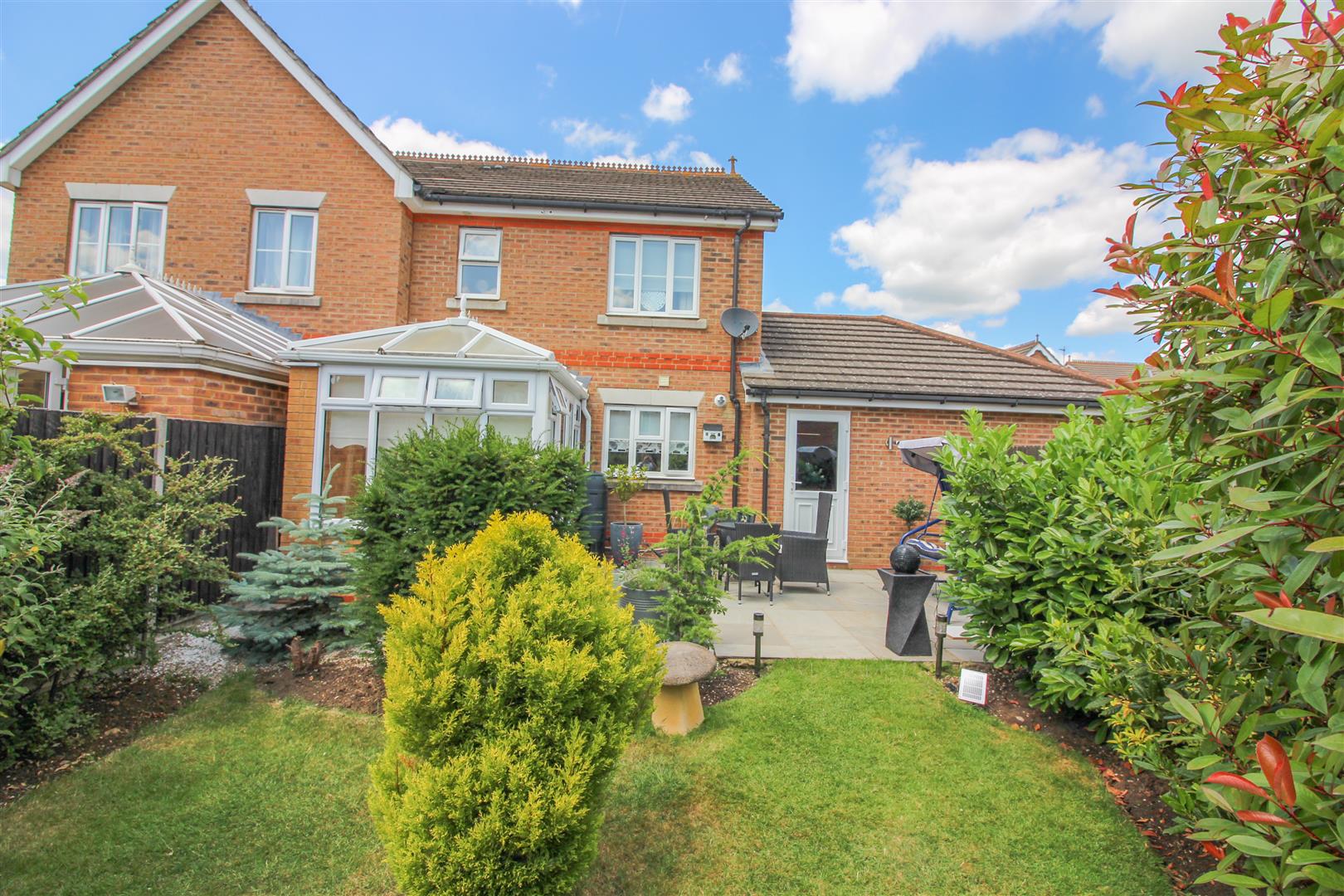 An immaculate three bedroom semi detached family home with garage, drive and conservatory. The property has an entrance hall, ground floor W.C, lounge, conservatory and a kitchen/diner which has a range of modern fitted wall and base units. The first floor has a family bathroom and three bedrooms with fitted wardrobes and an en-suite shower room to the main bedroom. The garage and drive is to the side of the property and the rear garden is laid to patio and lawn.