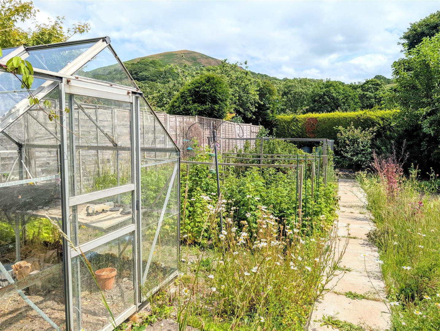 The spacious REAR GARDEN boasts spectacular views of the South Shropshire Hills. There is a large area predominantly laid to lawn with multiple seating areas suitable for outside entertaining, floral and shrubbery borders, a water feature and large vegetable patch with green house. The garden is enclosed on all sides by wooden fencing and mature hedging.