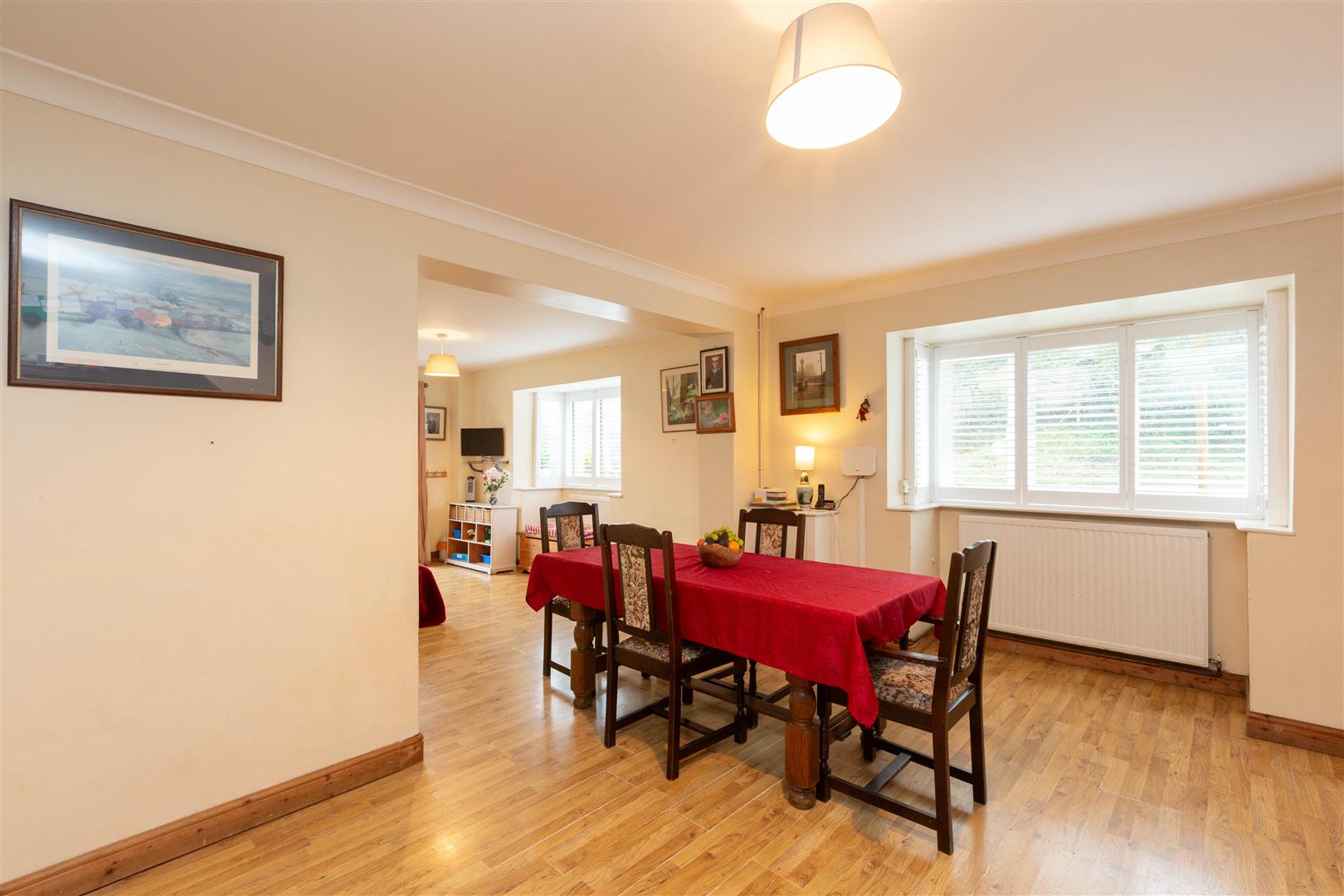 - Living room/dining room, kitchen/breakfast room, study, snug