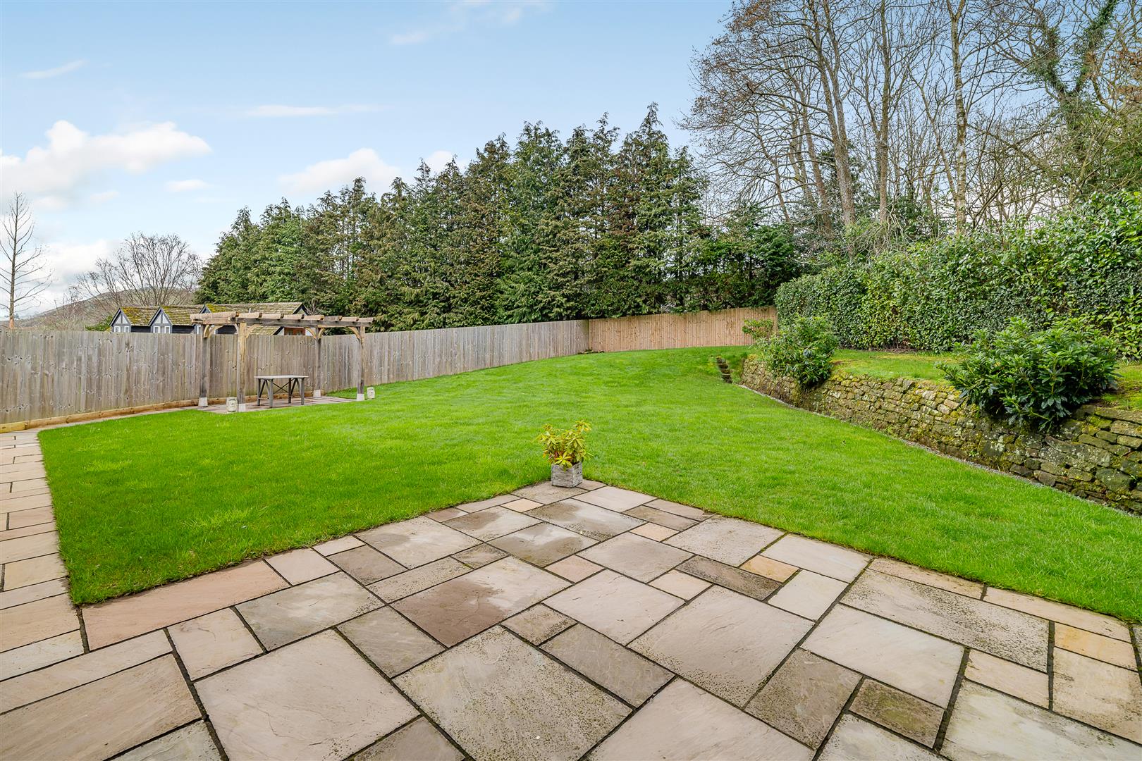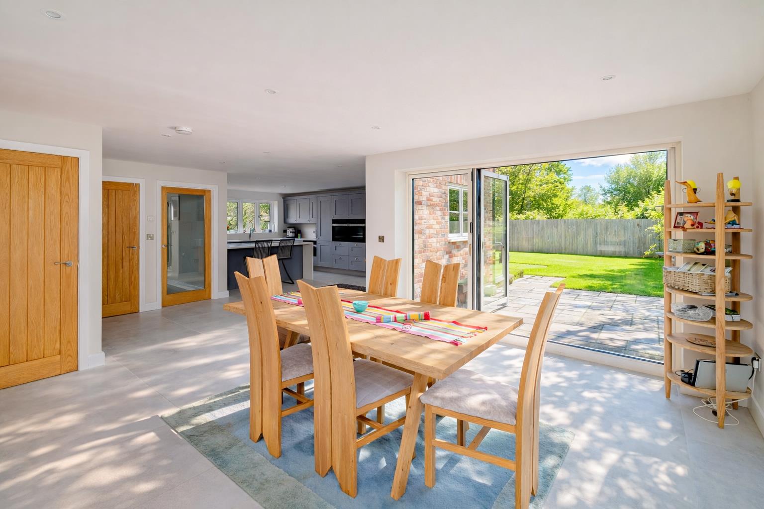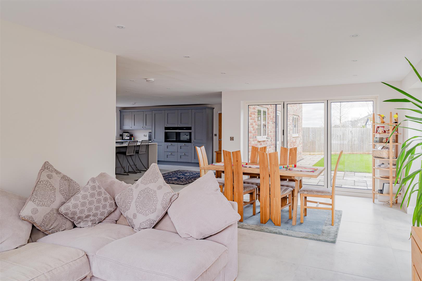 - Bi-fold doors opening onto landscaped wrap-around gardens with patios and perfola seating area