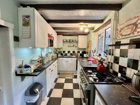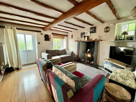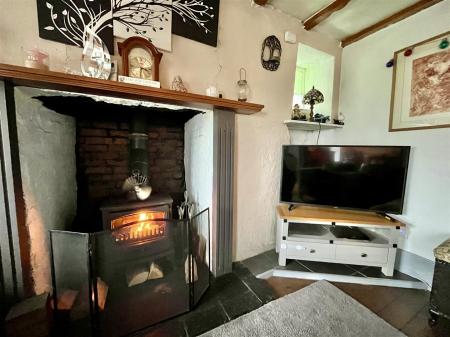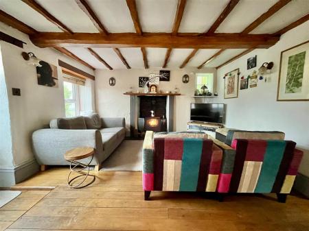 Sitting Room - 3.66m x 3.58m (12'00 x 11'09) - Featuring the large original fireplace with inset multi-fuel burner on a stone hearth, pine hardwood flooring, exposed wood beams, radiator, double glazed front aspect window. Door leads into the kitchen, opens through to;