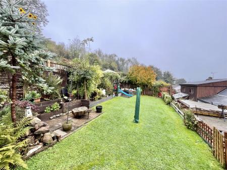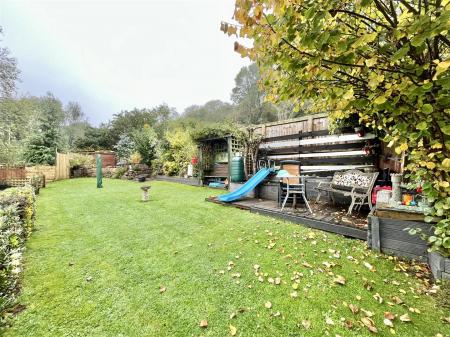 Outside - A gated pathway leads up to the front entrance, with the neighbouring property having a right of access over the path. At the rear of the property, you'll find a timber-framed garden room perfect for relaxing and entertaining. Steps rise to a well-maintained lawned garden, complete with a patio area and vibrant flower borders.