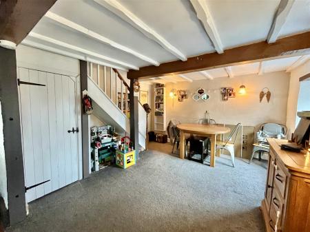 Dining Area - 3.63m x 3.56m (11'11 x 11'08) - Stairs lead to the first floor with useful storage cupboard below, radiator, internet point, exposed wood beams, front aspect double glazed window.