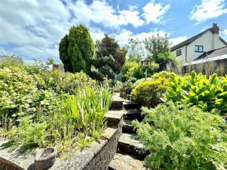 The south-facing rear garden is well-stocked with flower and shrub borders, divided by steps leading to the top, where you'll find a shed. There is also a private patio, perfect for relaxing in the sun.