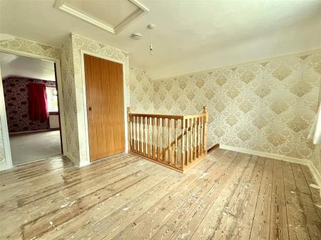 Landing - 3.91m x 3.89m (12'10 x 12'9") - Airing cupboard housing the pressurised hot water cylinder, loft hatch to loft space, exposed floorboards, radiator, front aspect window, door into;