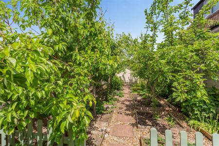 Outside - A side gate leads to the garden. The gardens, predominantly located at the front of the property, offer a picturesque setting with serene ponds, diverse shrubs and plants, and a neat row of conifer trees. A cozy gazebo equipped with a log burner provides an ideal space for entertaining, complemented by a neatly designed deck with railings. Timber-framed sheds and outbuildings enhance the practicality of the space. Additionally, a charming small orchard features another shed. At the rear of the property, a harmonious mix of lawn and patio areas creates a versatile outdoor retreat, accompanied by a robust brick-built outbuilding for added convenience.