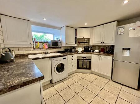 Kitchen/Diner - 7.01m x 3.05m (23'00 x 10'00) - Fully fitted modern wall and base level units with laminate worktops and tiled splash-backs, breakfast bar with built in storage, ceramic sink unit with drainer, integrated electric oven, induction hob and extractor hood. Space and plumbing for a washing machine, dishwasher, fridge/freezer and tumble dryer. Heated towel rail, tiled floor, front aspect window, stairs lead to the first floor.
