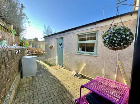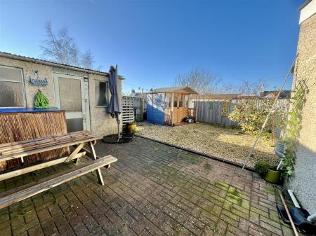 To the side, a second gate and footpath provide access to the well-maintained, south-facing rear garden. The garden features a block-paved seating area, a lawned section, and flower borders, all enclosed by fencing and a walled surround. Additionally, there is a summer house and block-built storage shed with lighting and two single-glazed windows, offering excellent potential for conversion into a home office.