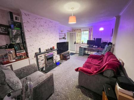 Lounge - 4.80m x 3.02m (15'09 x 9'11) - Ceiling light, coving, chimney breast with living flame gas fire inset, alcoves to either side, single radiator, power points, wall light point, front aspect double glazed window, door giving access into:
