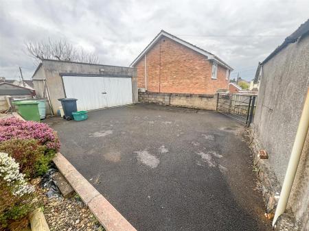 From a wrought iron gate, the property benefits from tarmacked parking for three/four vehicles and a detached garage/workshop.