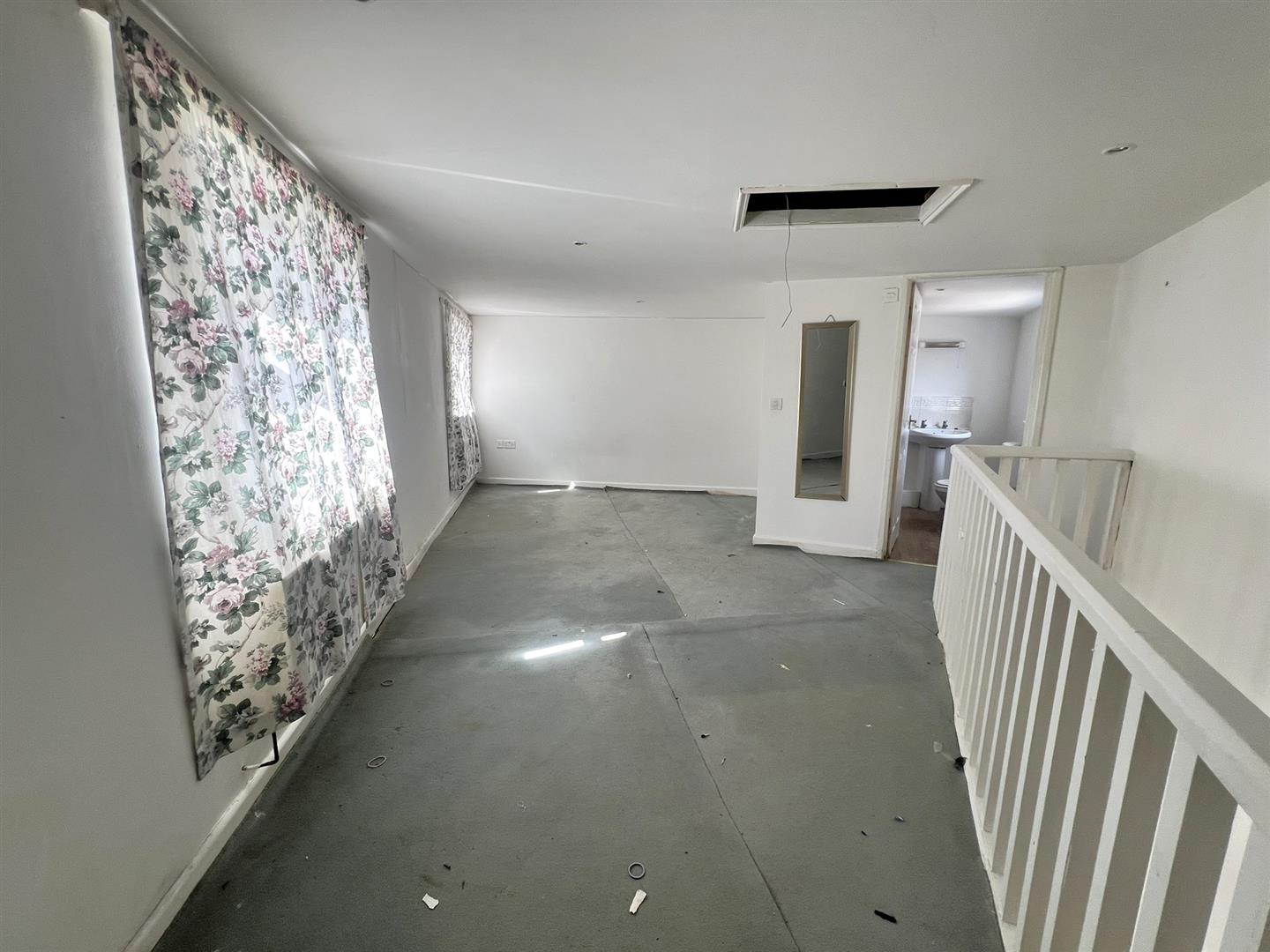 Bedroom - 8.99m x 4.29m narrowing to 0.53m (29'06 x 14'01 na - Inset ceiling spots, access to roof space, power points, tv point, double radiator, two front aspect upvc double glazed windows, door giving access into: